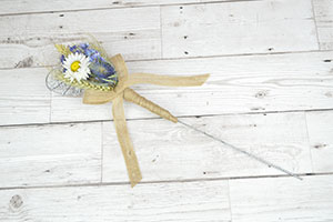 Each design features a silver glittered woven fine wire heart with pearls, dried flowers and wheat, tied together with a cute raffia bow. How delightful will your little flower girls look carrying one of these pretty Flower Girl Wands!