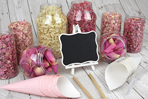 Prices start from £50 for a 30-guest package and £80 for a 50-guest package. Shop for your Confetti Bar at ShropshirePetals.com.