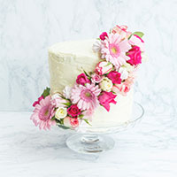 When decorating with fresh flowers that aren’t an edible variety, be careful to wrap the stems before inserting into the cake – this will avoid any sap seeping into the sponge.