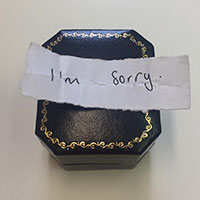 “It’s not every day you come across a beautiful engagement ring left in a park, but to find one with such a mysterious note is very bizarre! We can only speculate as to why the presumed owner is sorry, maybe he couldn’t go through with a proposal, or maybe he broke his girlfriend’s heart? Who knows.