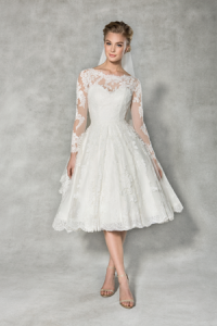 Shorter wedding dresses are perfect for fun, flirty and fabulous brides. They have cropped hemlines to show off luscious legs and are often nipped at the waist to create stunning curves.